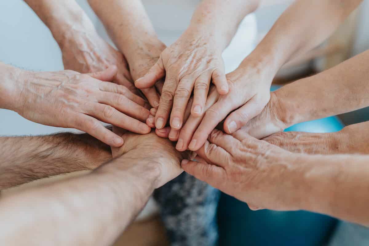Close-up of team work while exercising together